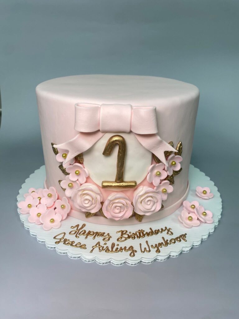 Double Stacked Cake Flowers Bow Dots Pink C050