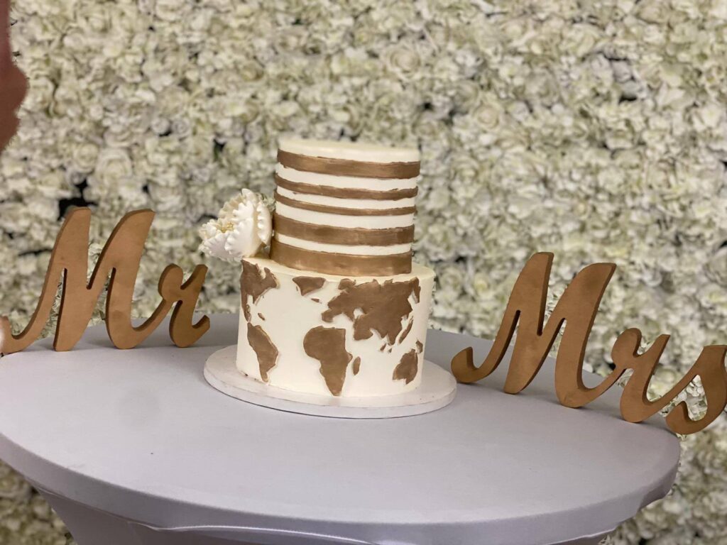Two Tiered Wedding Cake Brush Embroidery Gold WC004