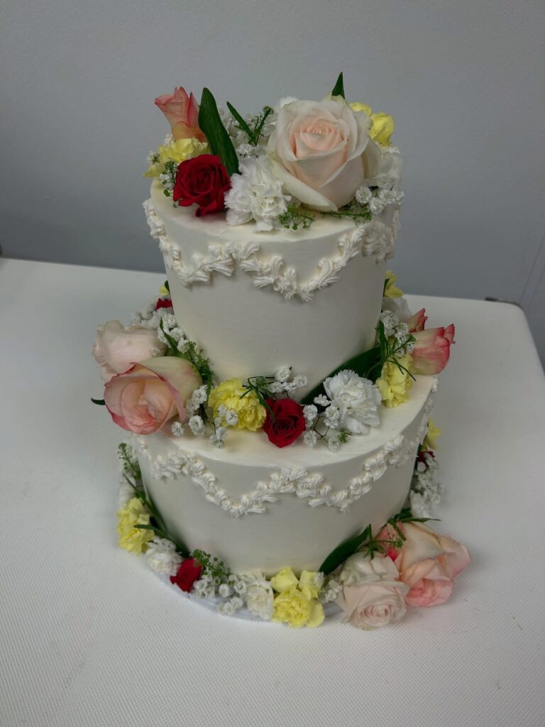 Two Tiered Wedding Cake Pallet Knife Flowers Roses WC169
