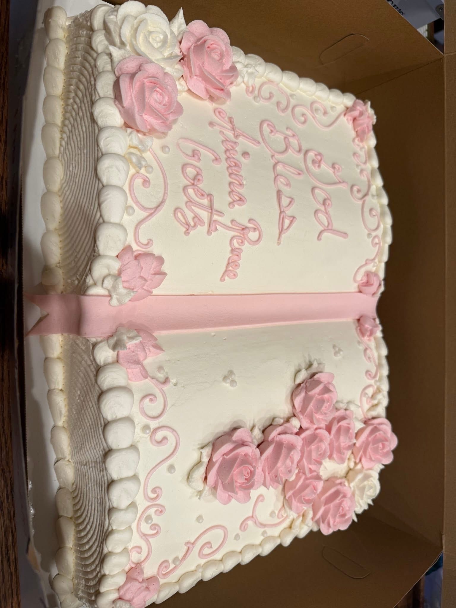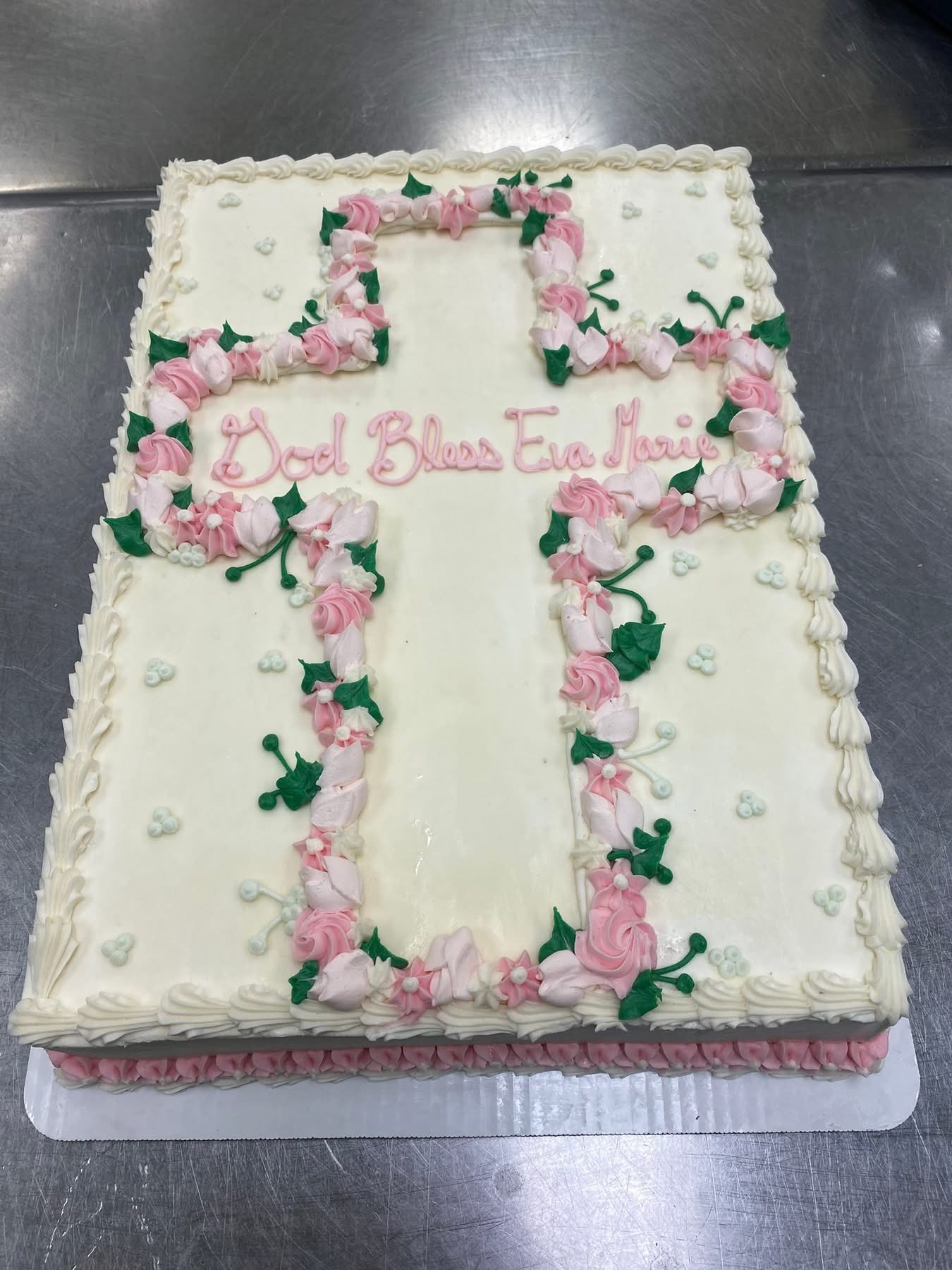 Custom Baptism Sheet Cake Cross Flowers SC003