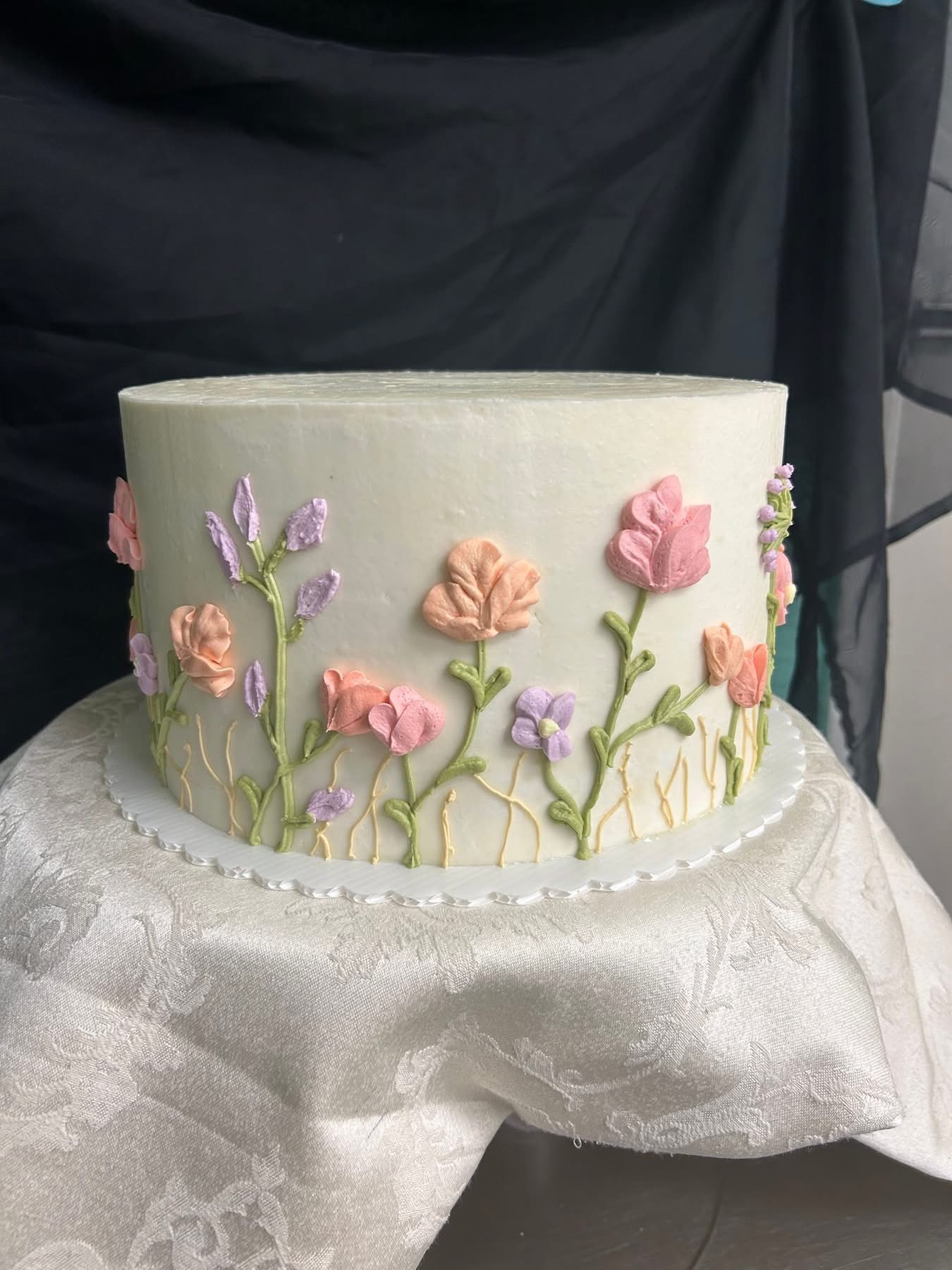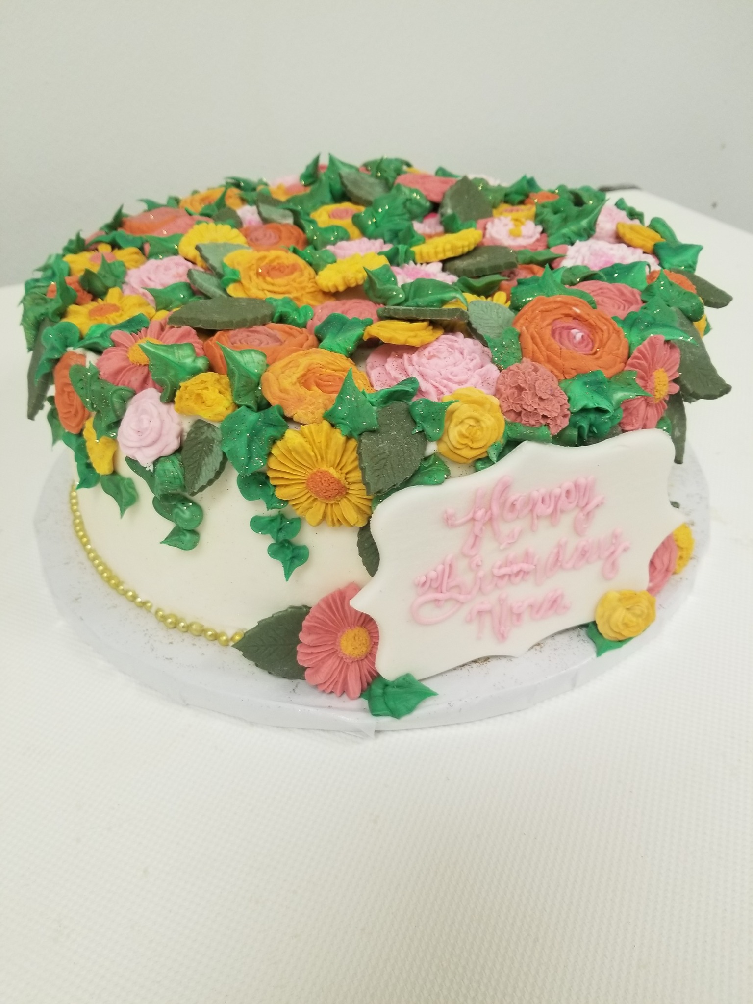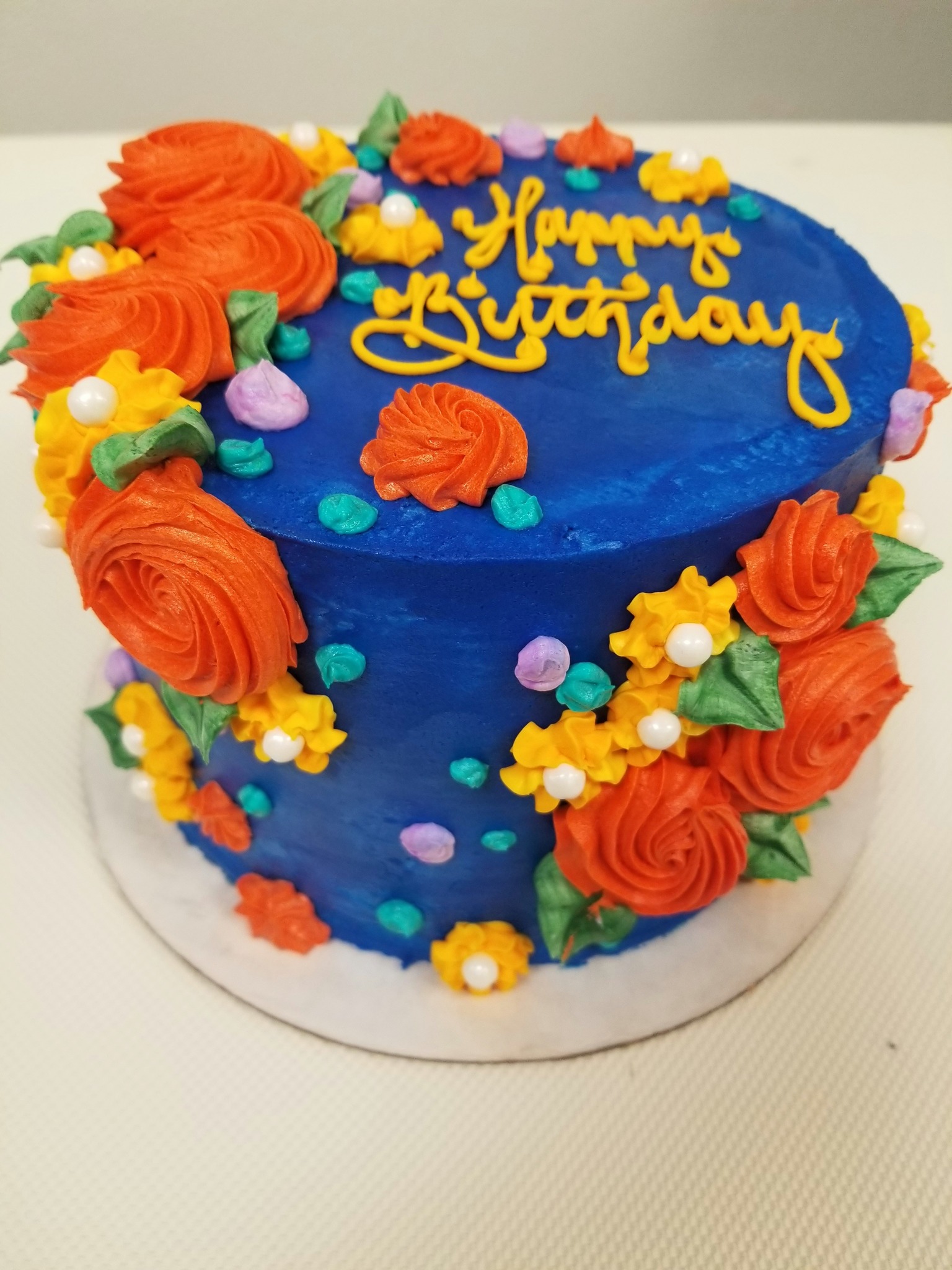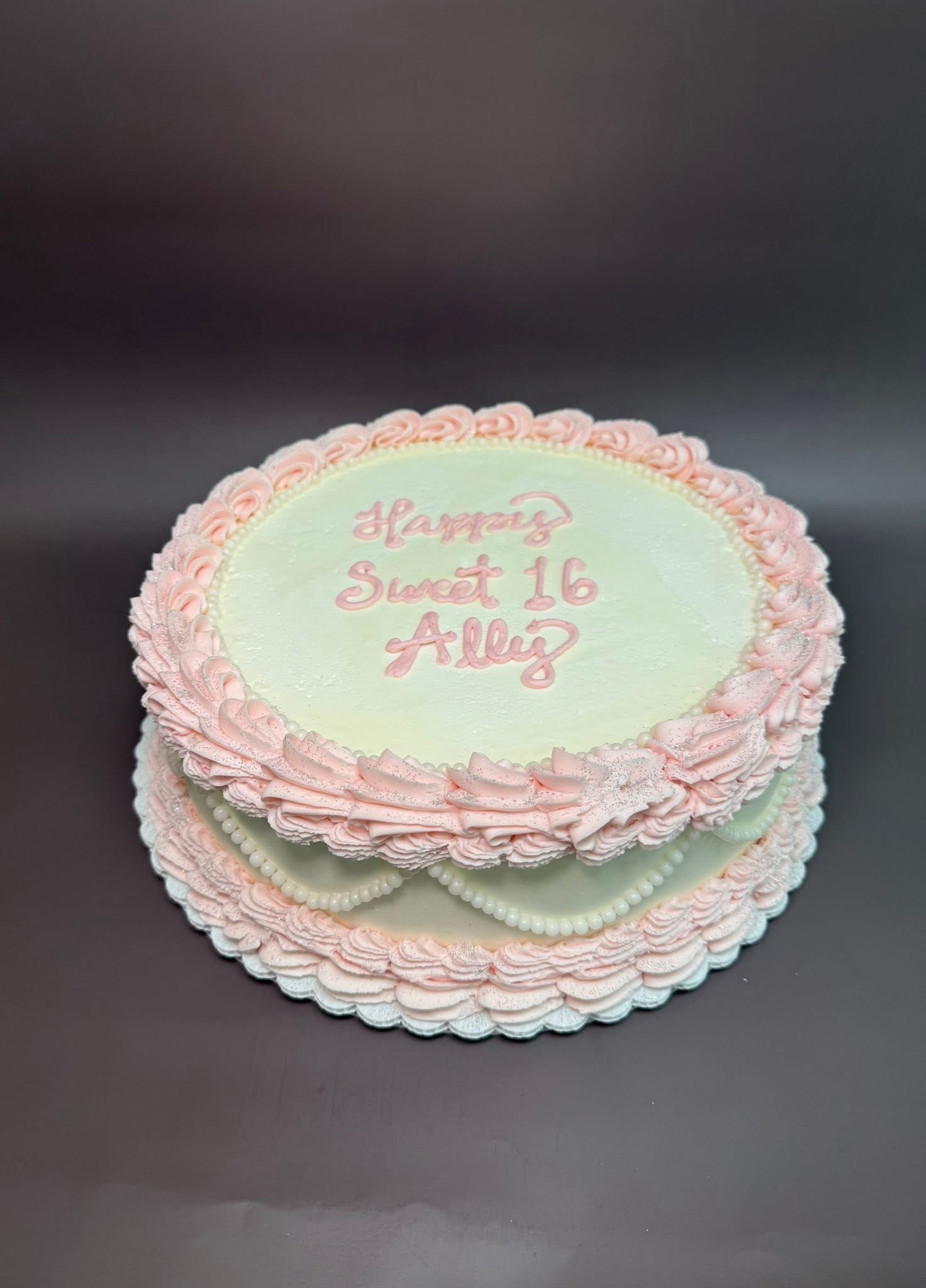Double Stacked Birthday Cake Buttercream Flowers Sanding Sugar SC411