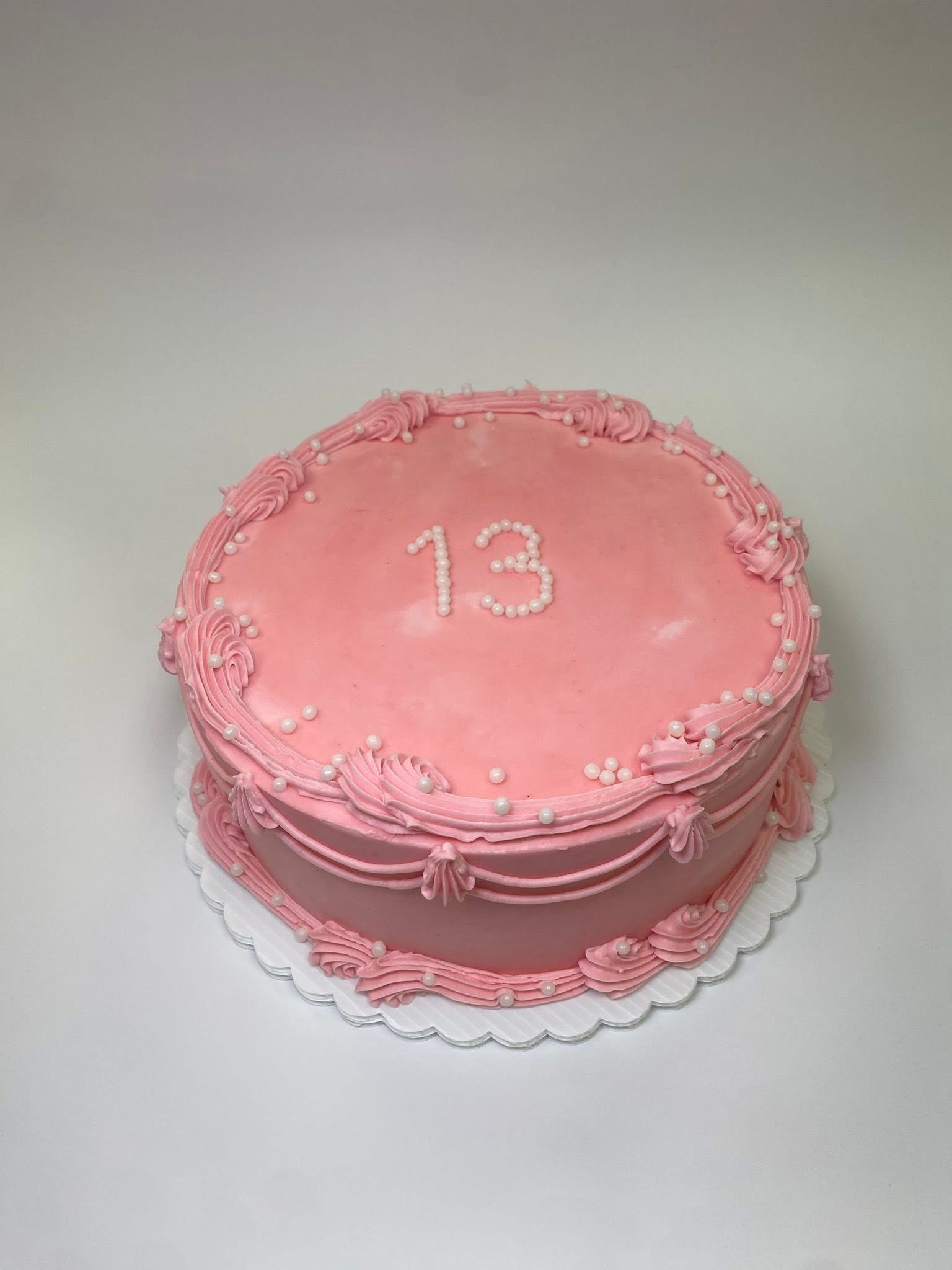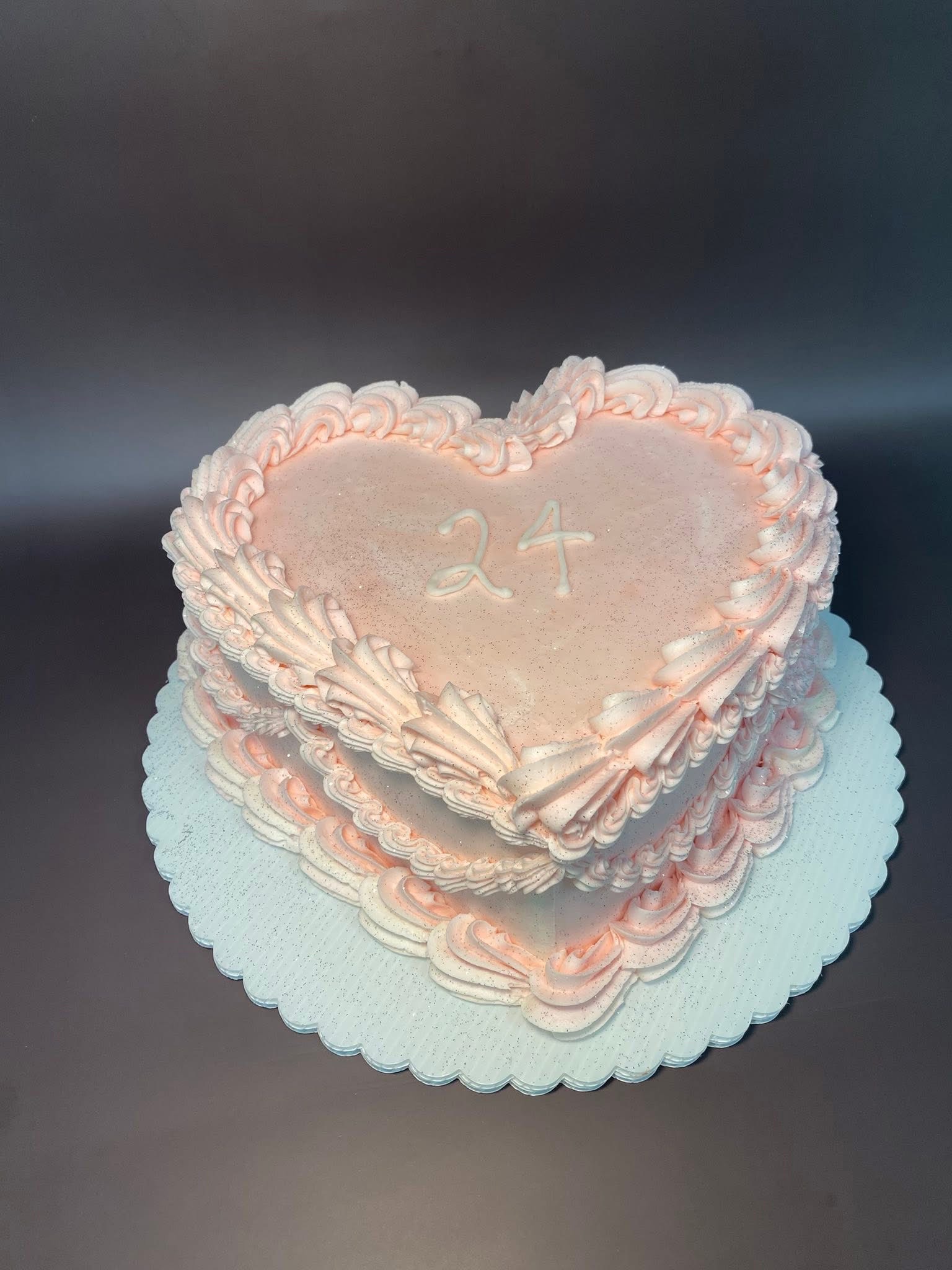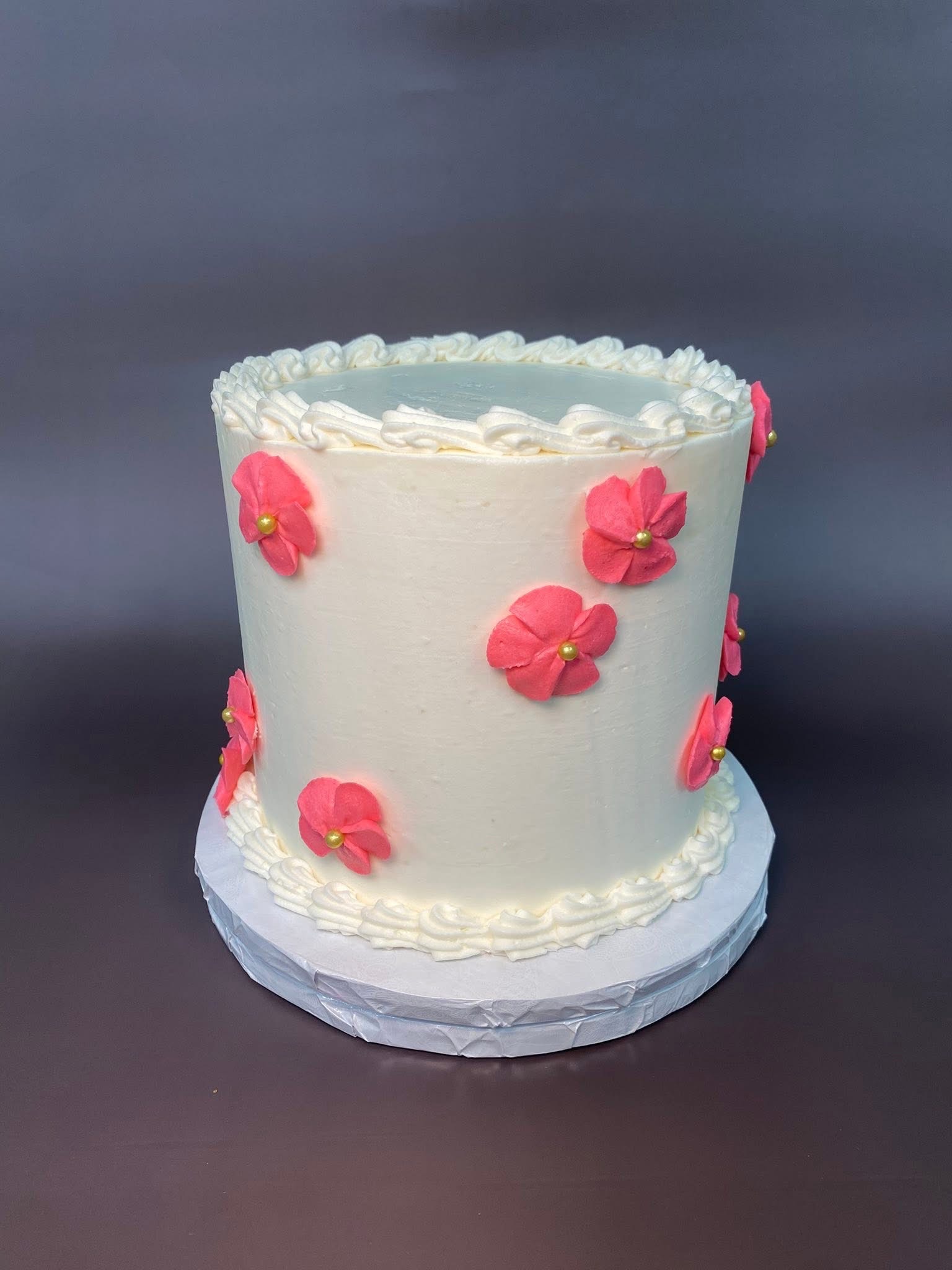 Double Stacked Cake Flowers Bow Dots Pink C050