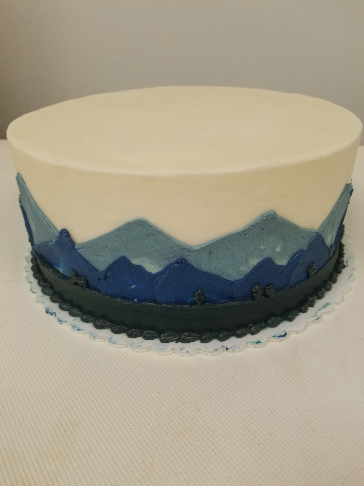 Double Stacked Birthday Cake Mountains Trees Wolf SC415