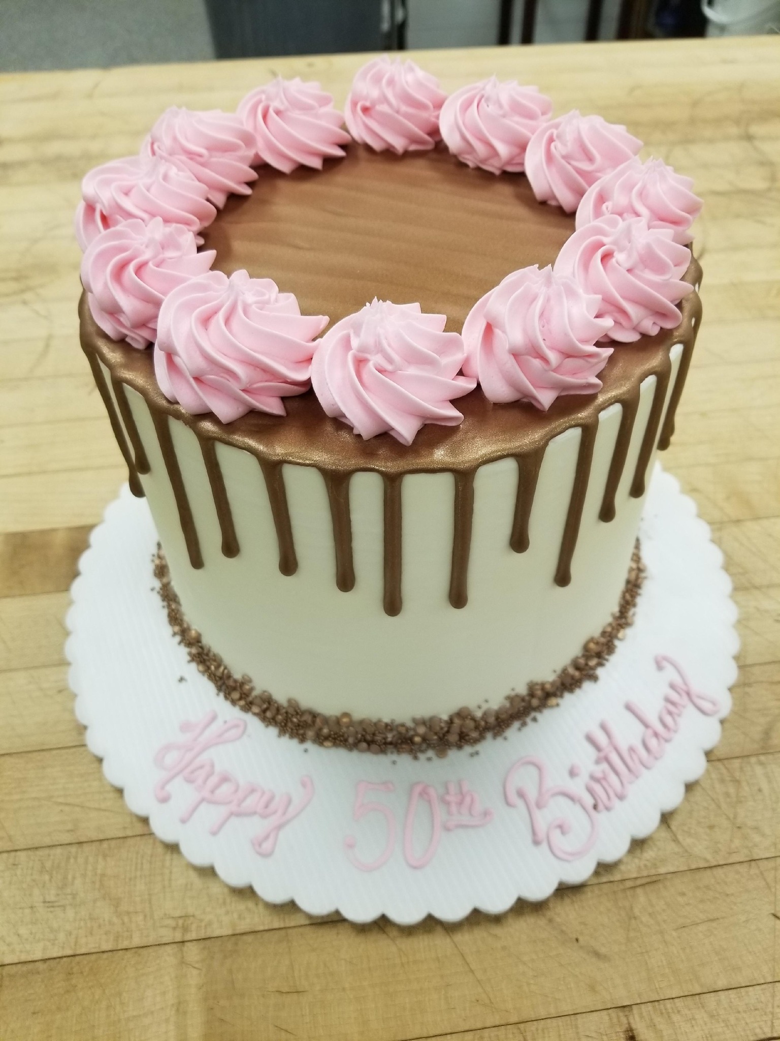 Double Stacked Cake Champagne Strawberries Drip Rosettes SC024