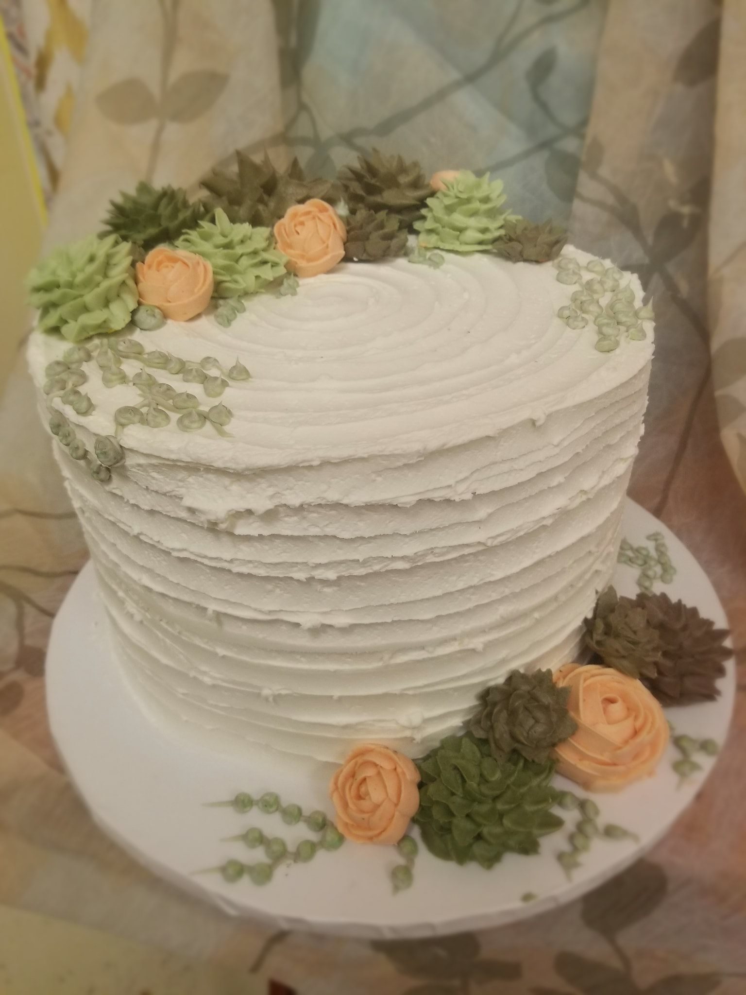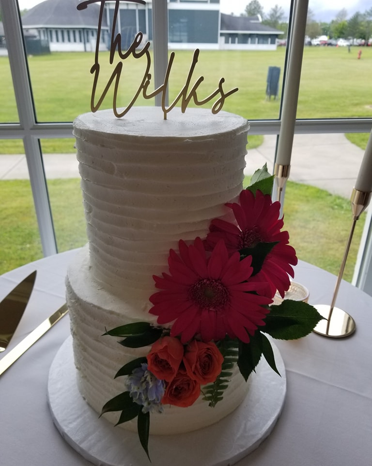 Three Tiered Wedding Cake Horizontal Spatula Flowers Greenery WC011