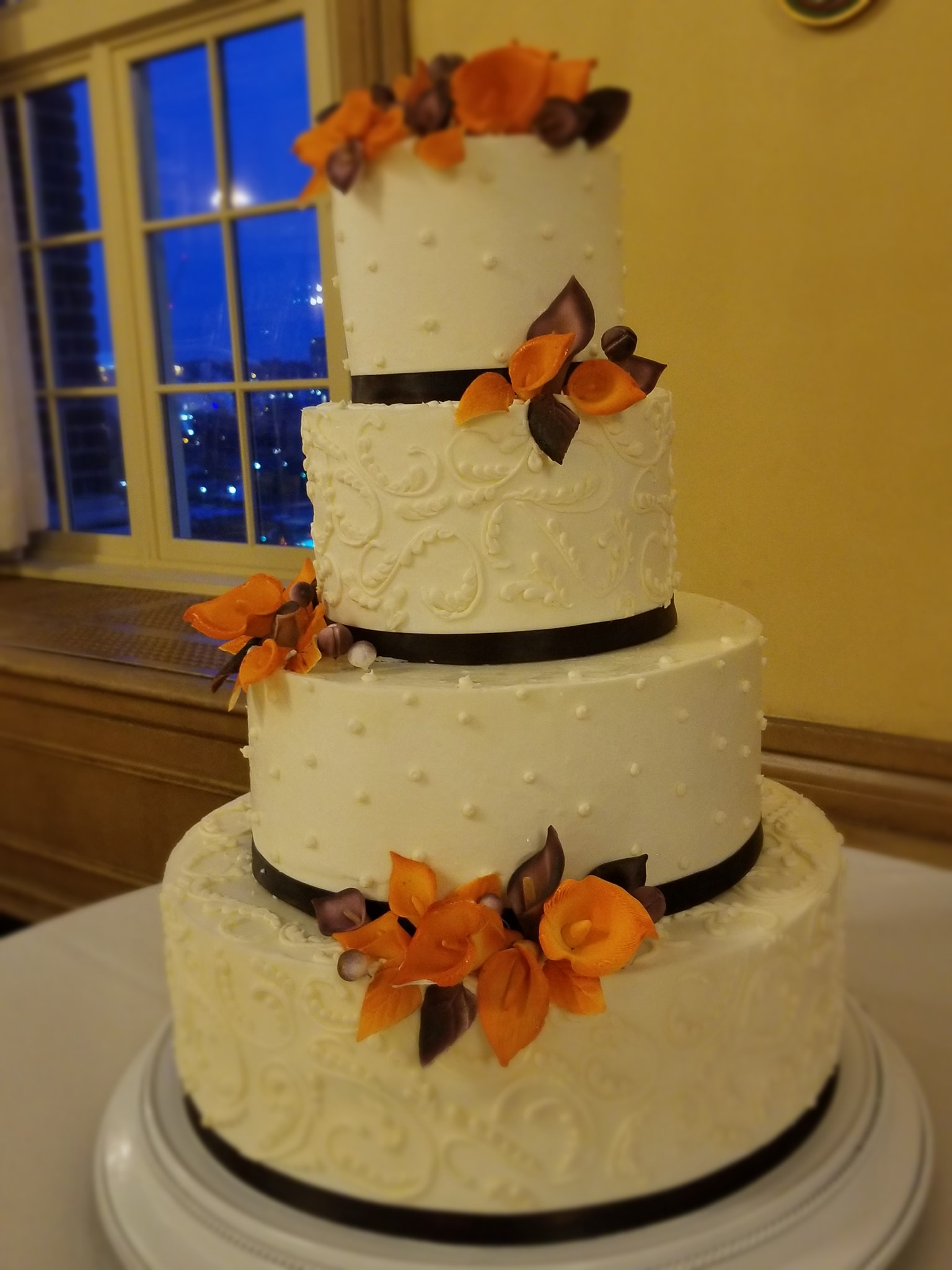 Two Tiered Wedding Cake Orange Ombre Rose Clusters WC167