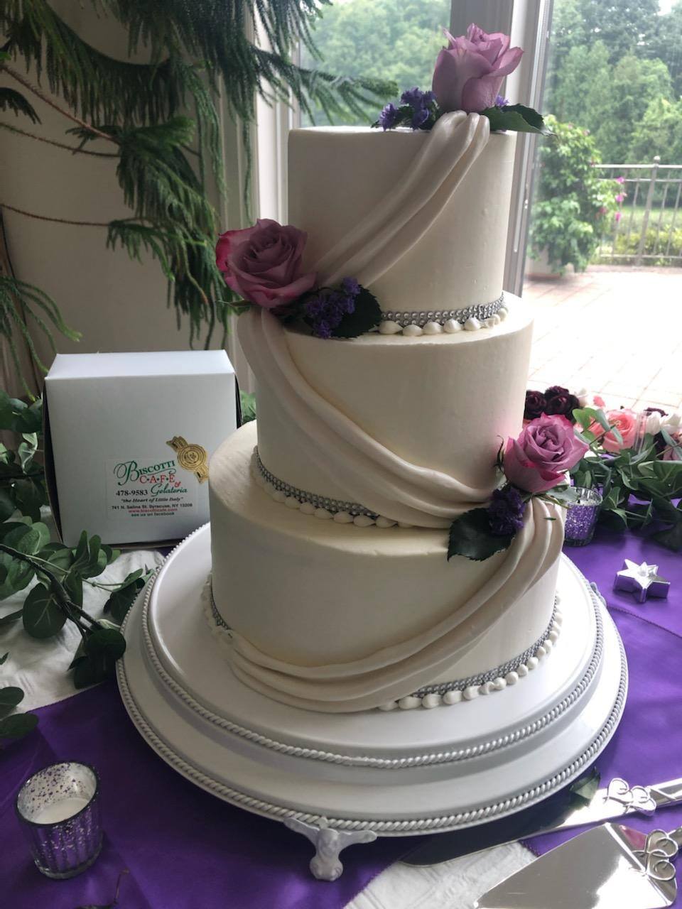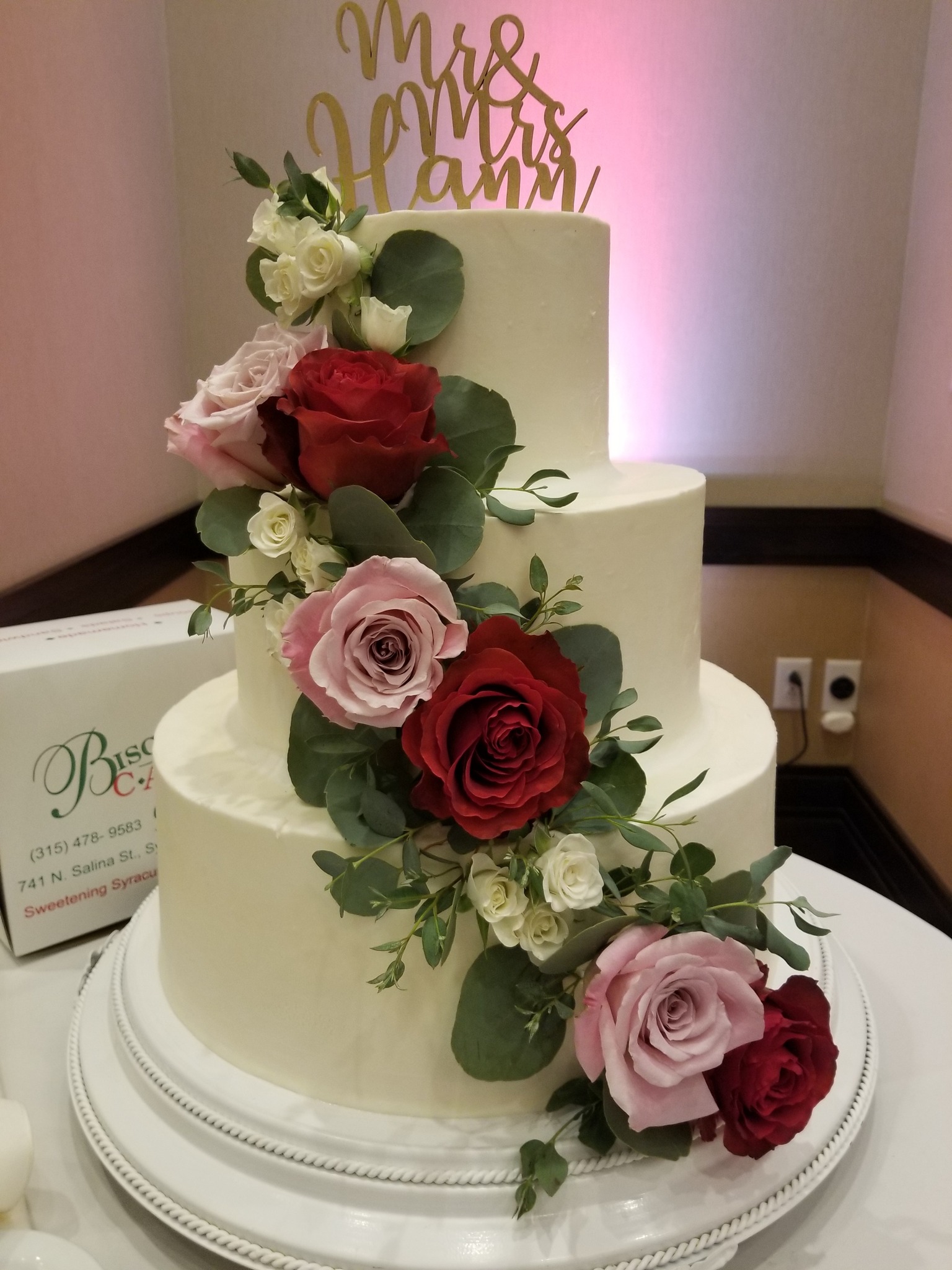 Three Tiered Wedding Cake Cascading Roses Swiss Dots WC006