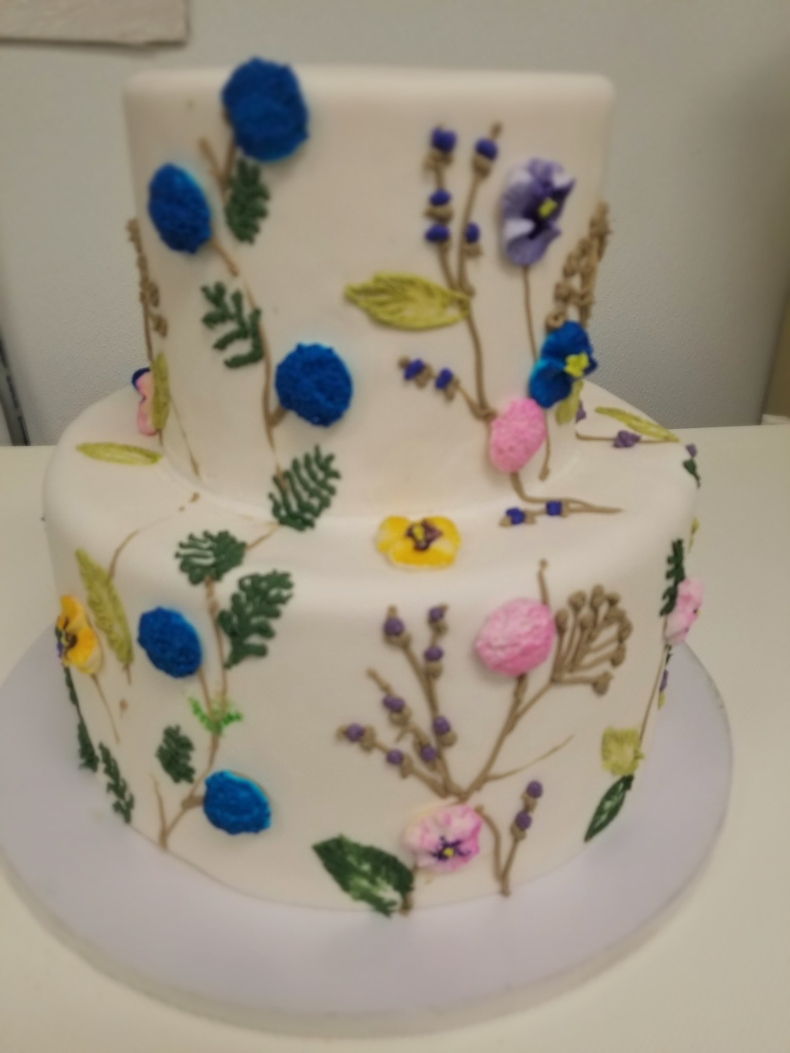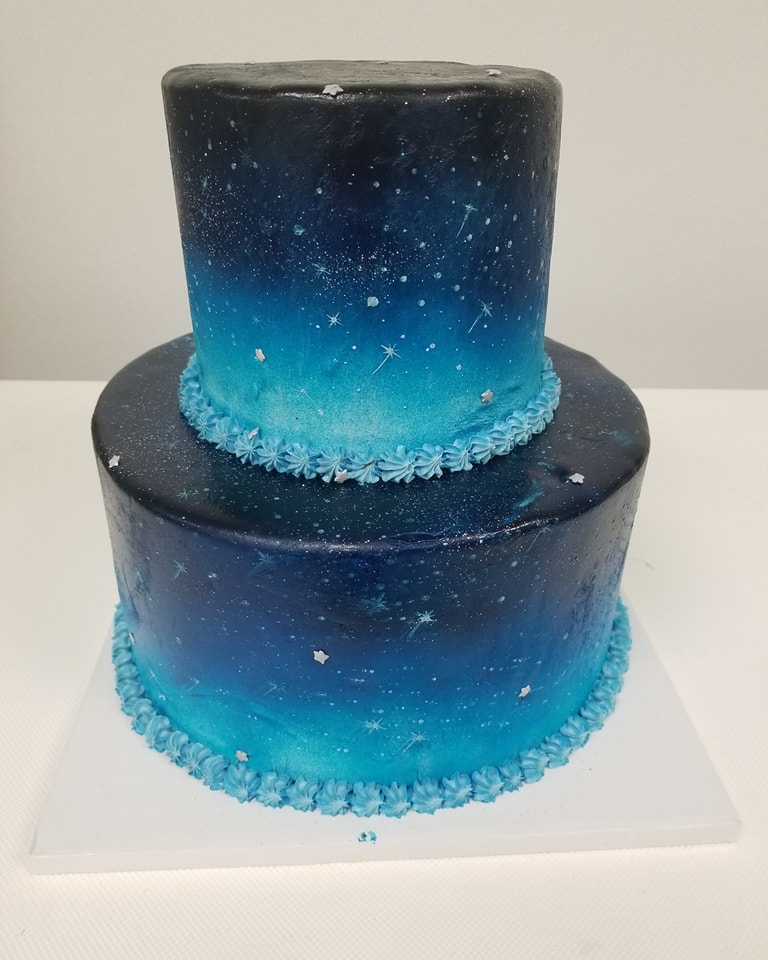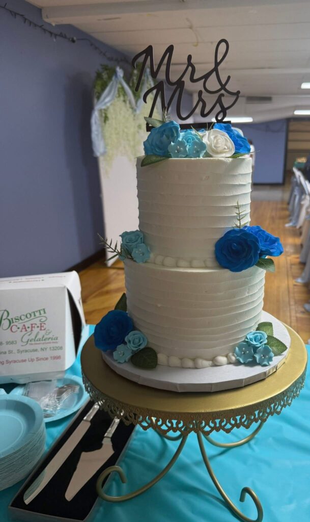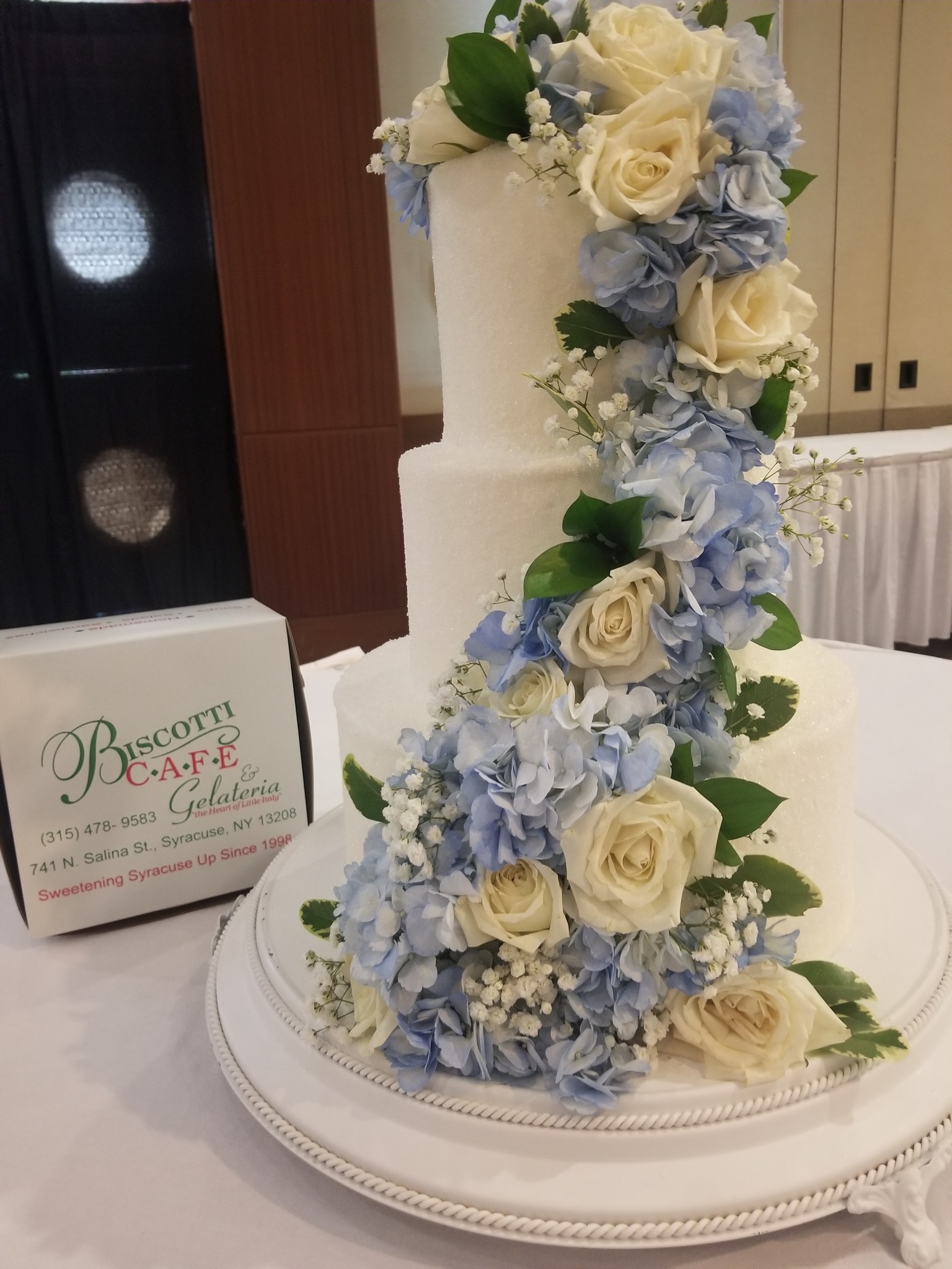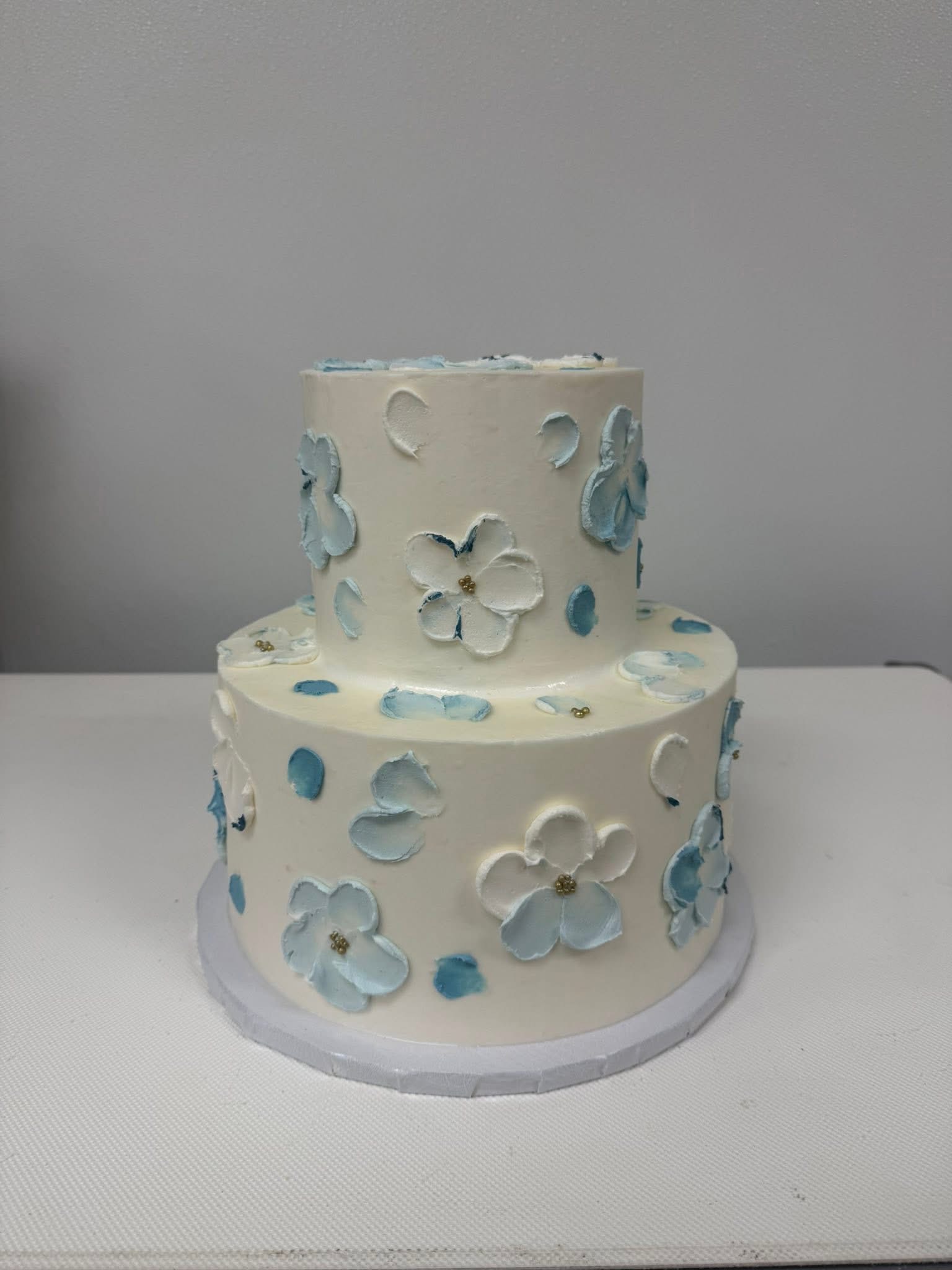 Two Tiered Wedding Cake Horizontal Spatula Blue Sugar Flowers WC162