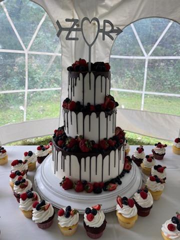 Three Tiered Wedding Cake Square Chocolate Drip Strawberries WC008