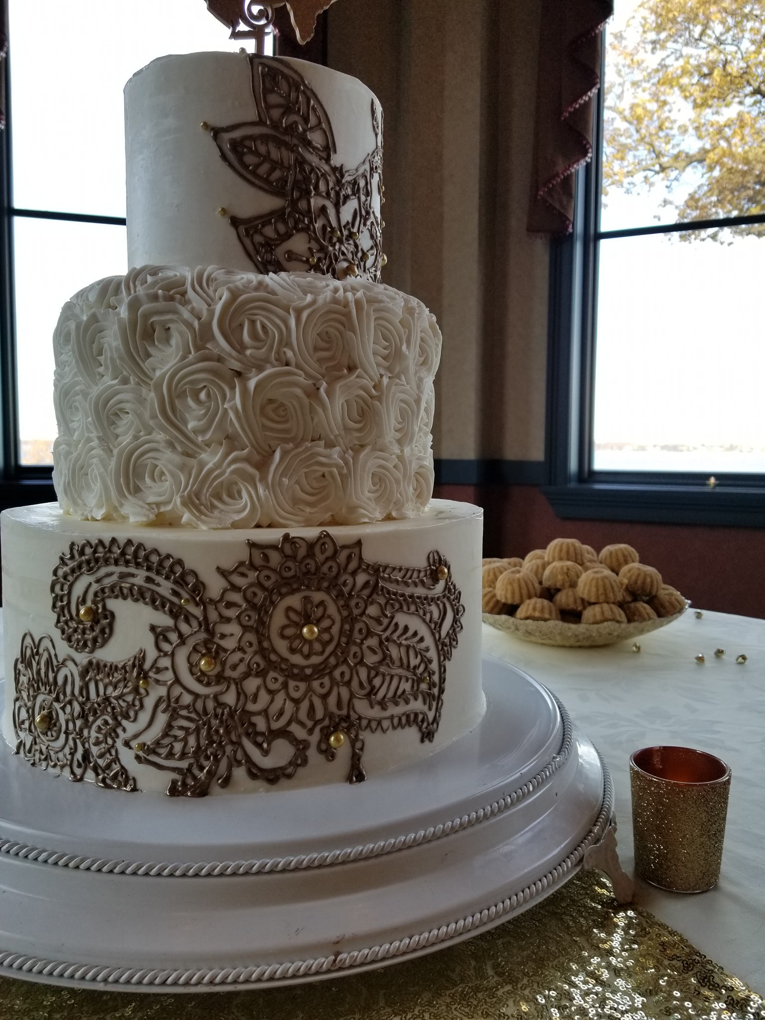 Two Tiered Wedding Cake Brush Embroidery Gold WC004