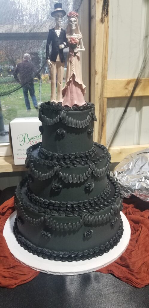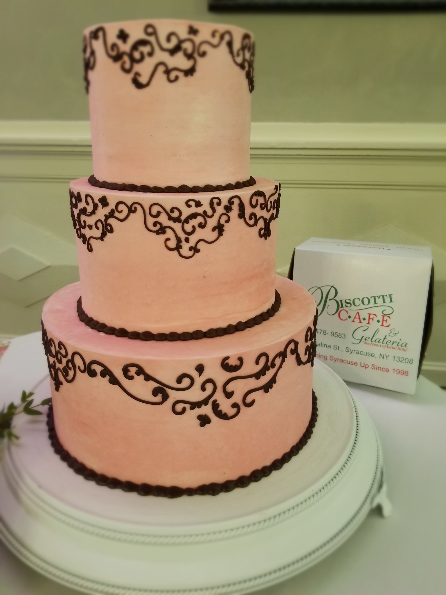 Three Tiered Wedding Cake Black Vintage Piping WC051