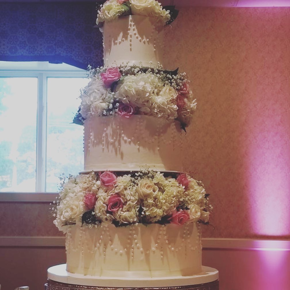 Four Tiered Wedding Cake Piping Cascading Roses WC033