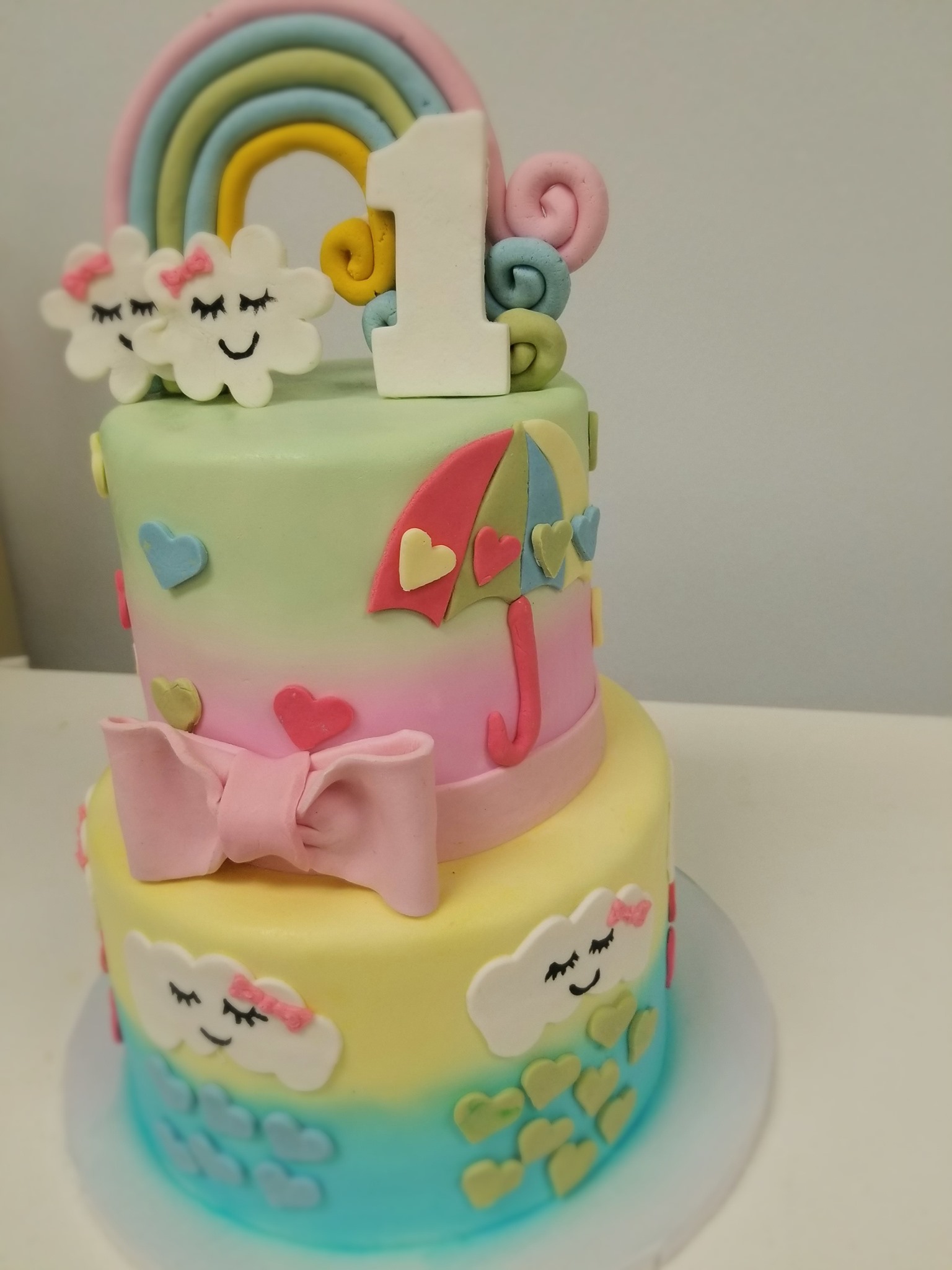 Two Tiered Birthday Cake Dr. Seuss Rainbow SC038