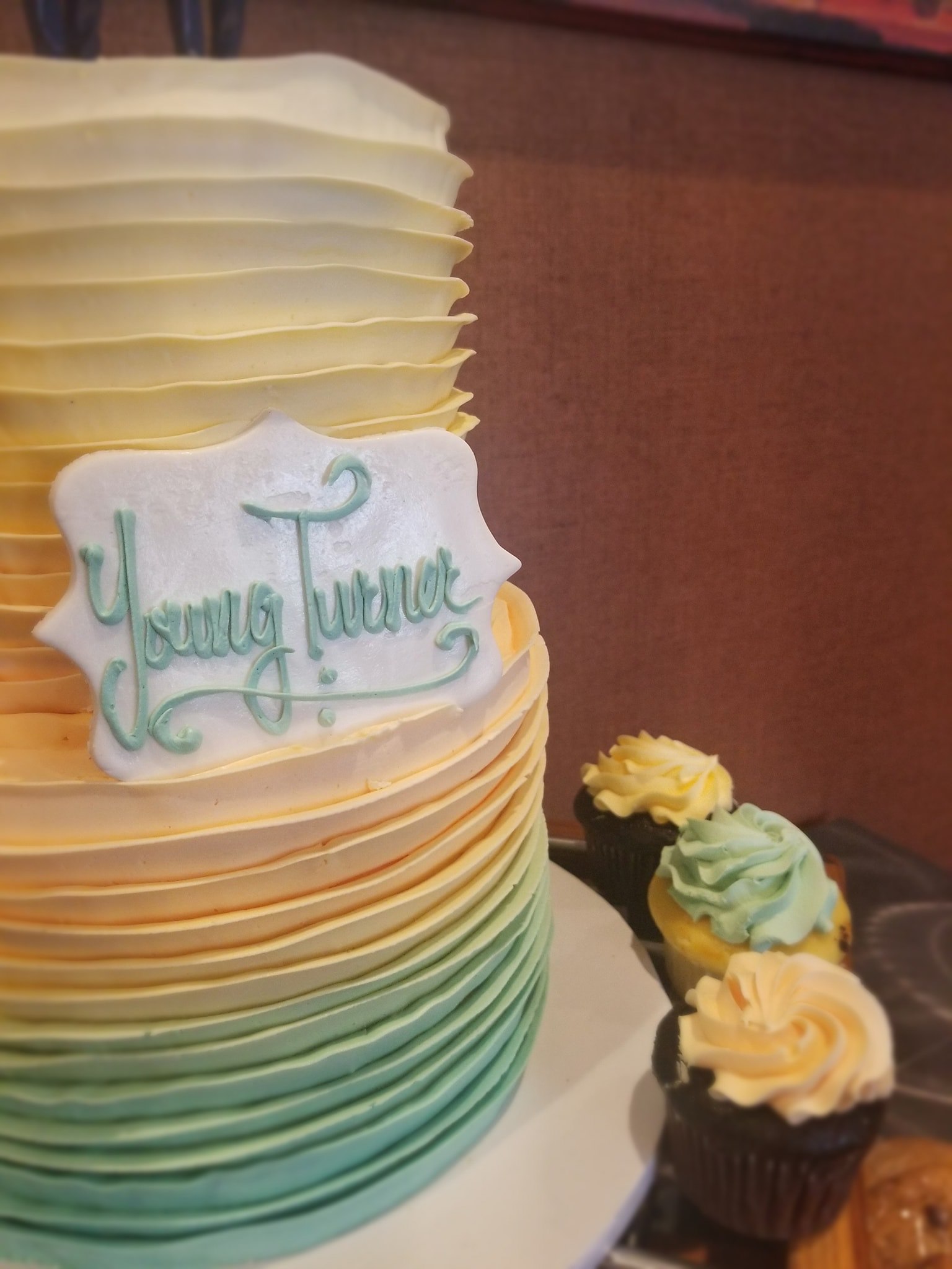 Two Tiered Baby Shower Cake Ombre Ruffles Gold Moon Stars SC170