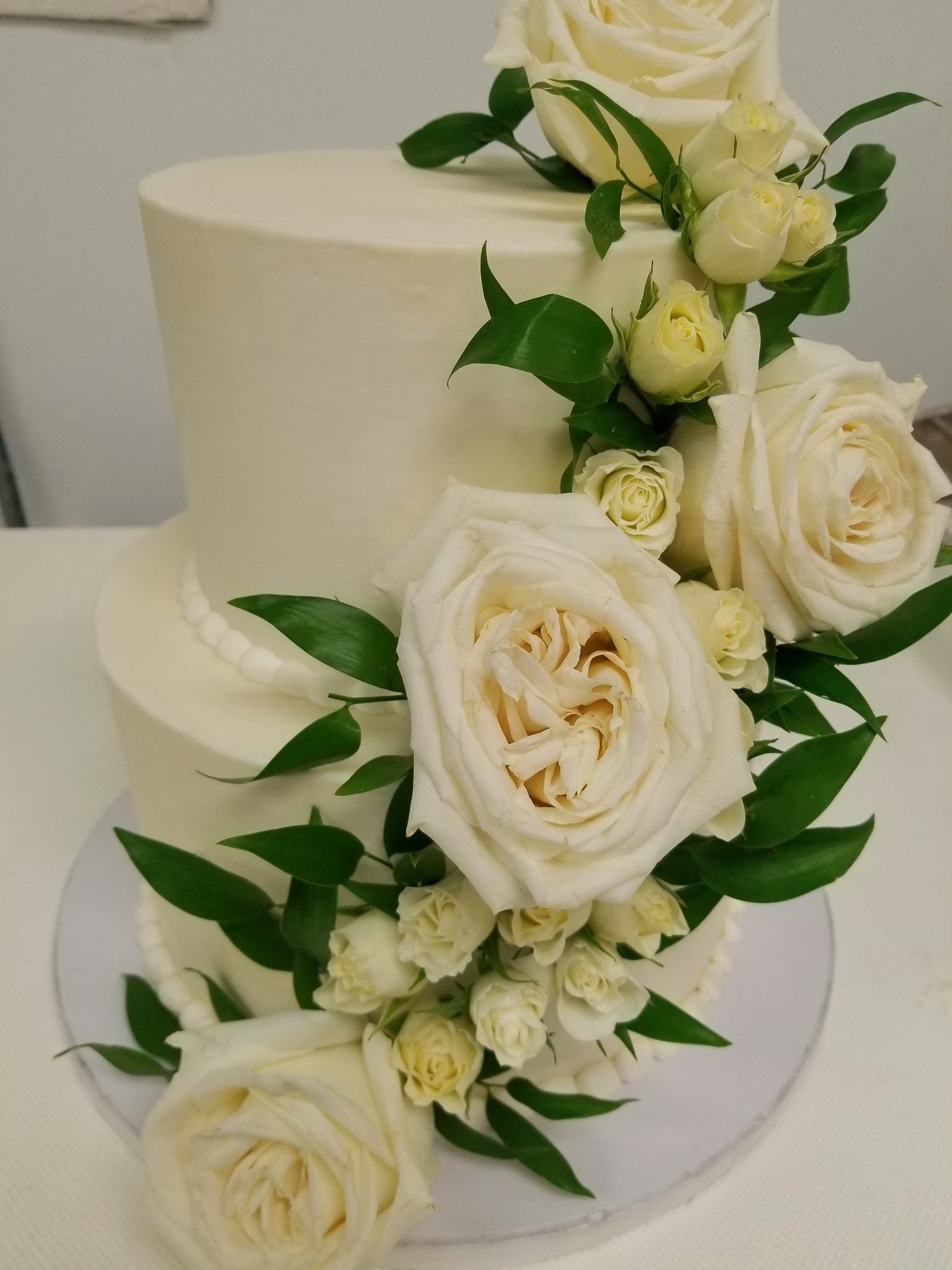 Three Tiered Wedding Cake Piping Cascading Roses WC046