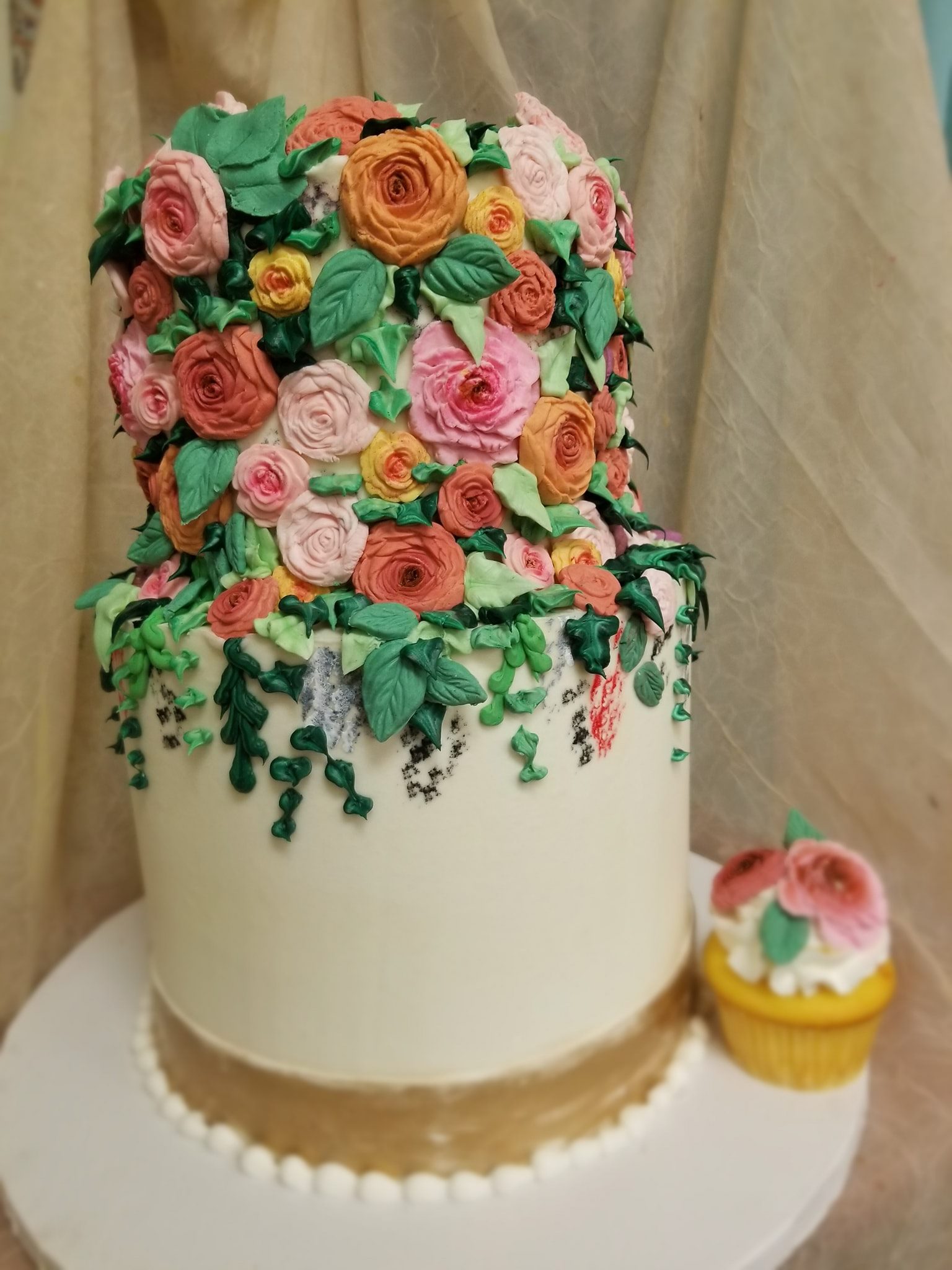 Two Tiered Sculpted Cake Barrel Flowers SC182