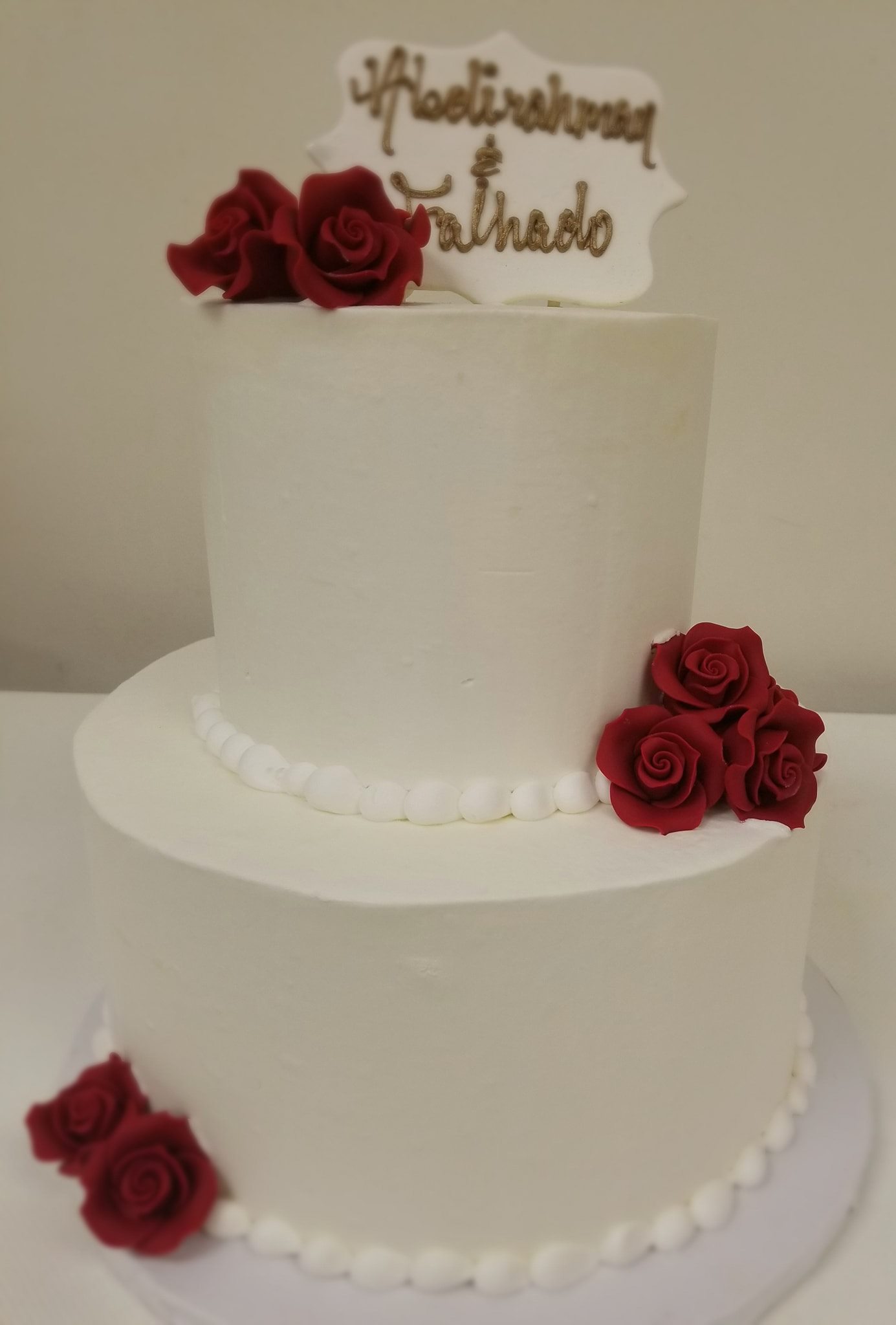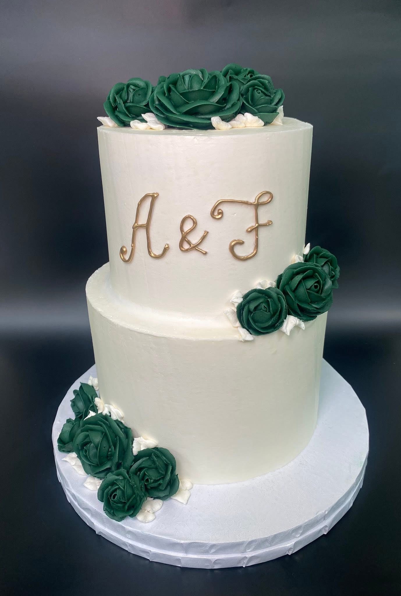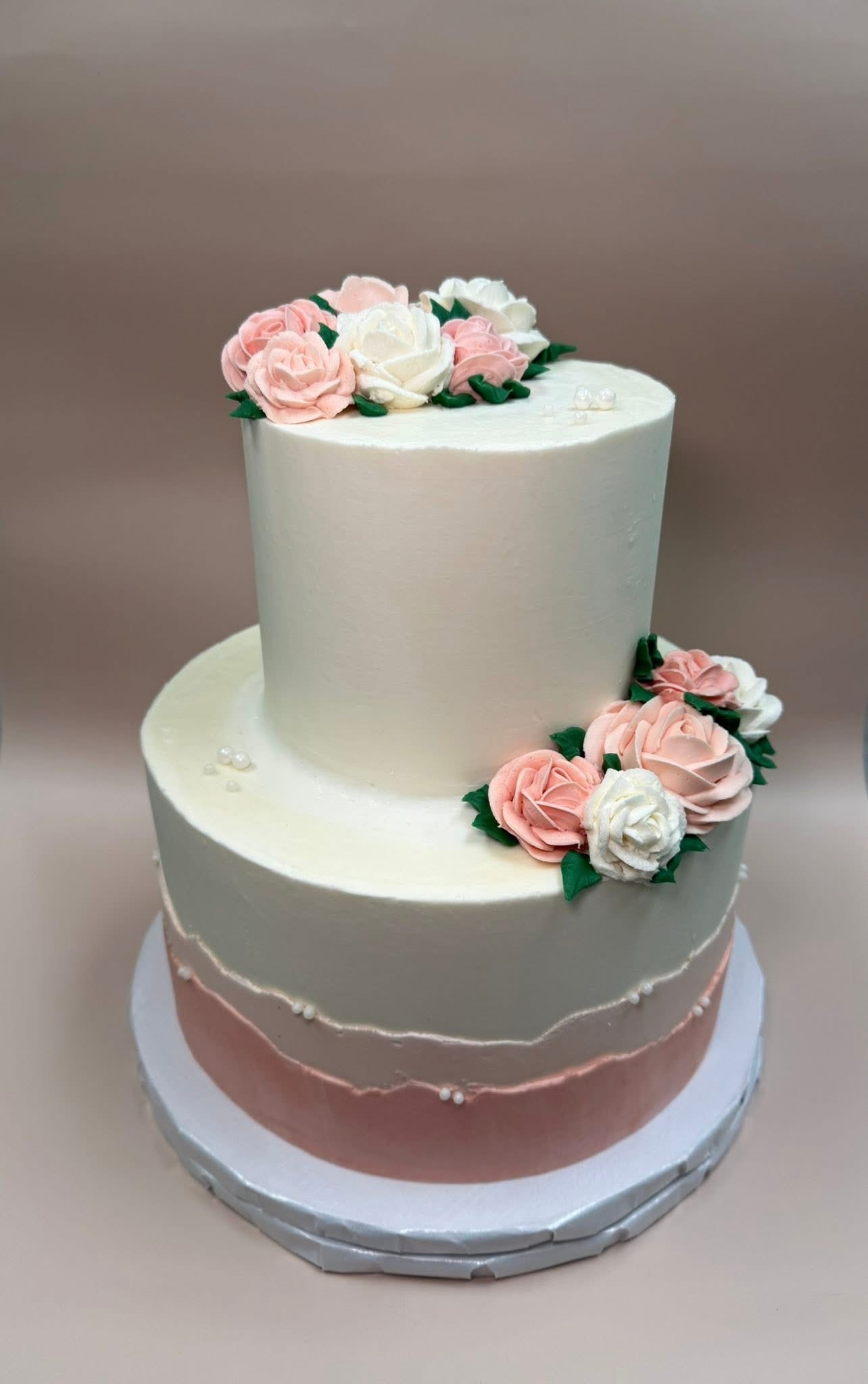 Two Tiered Wedding Cake Diagonal Spatula Rose Clusters WC048