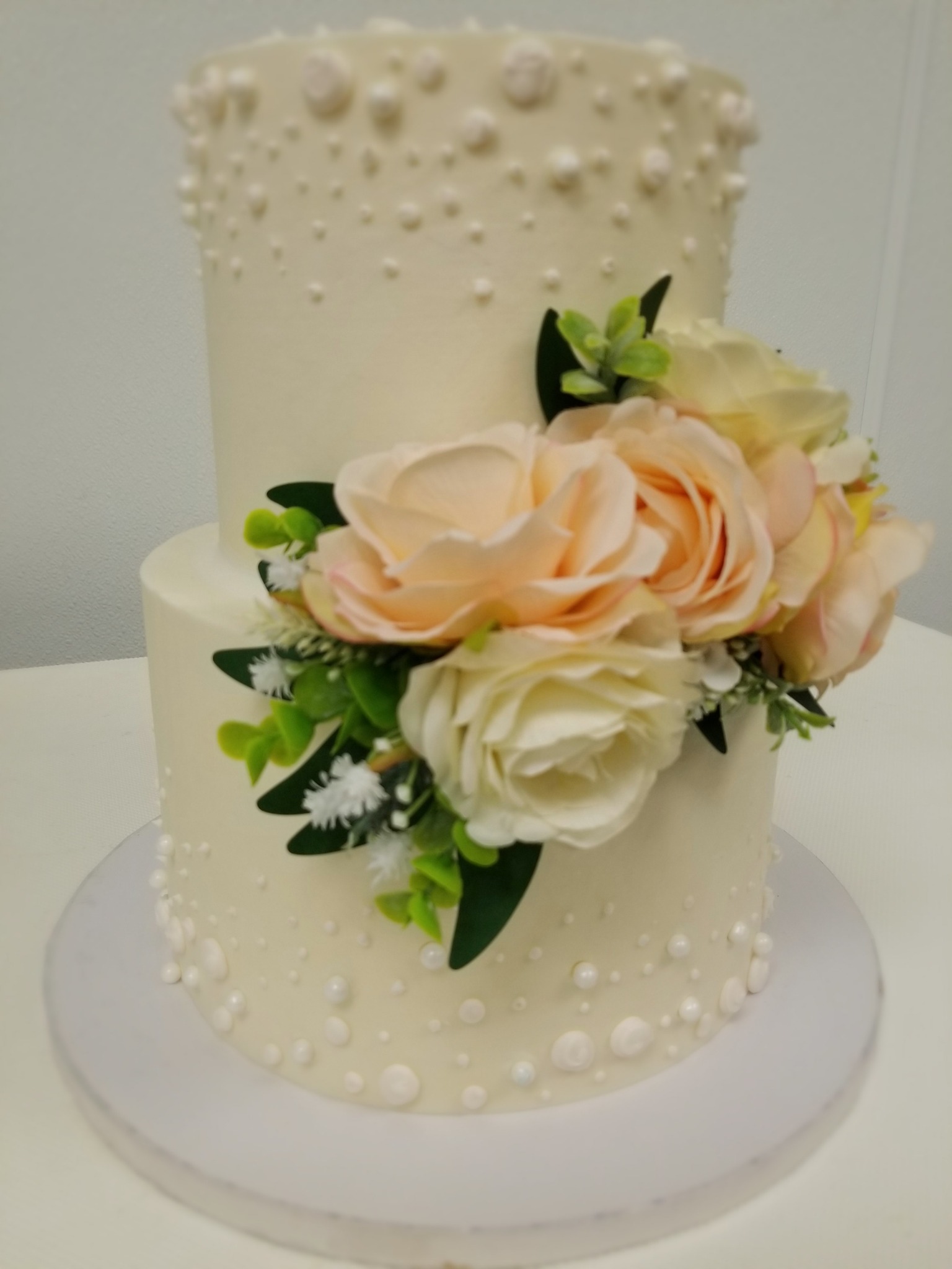 Two Tiered Wedding Cake Pearls Rose Clusters WC026