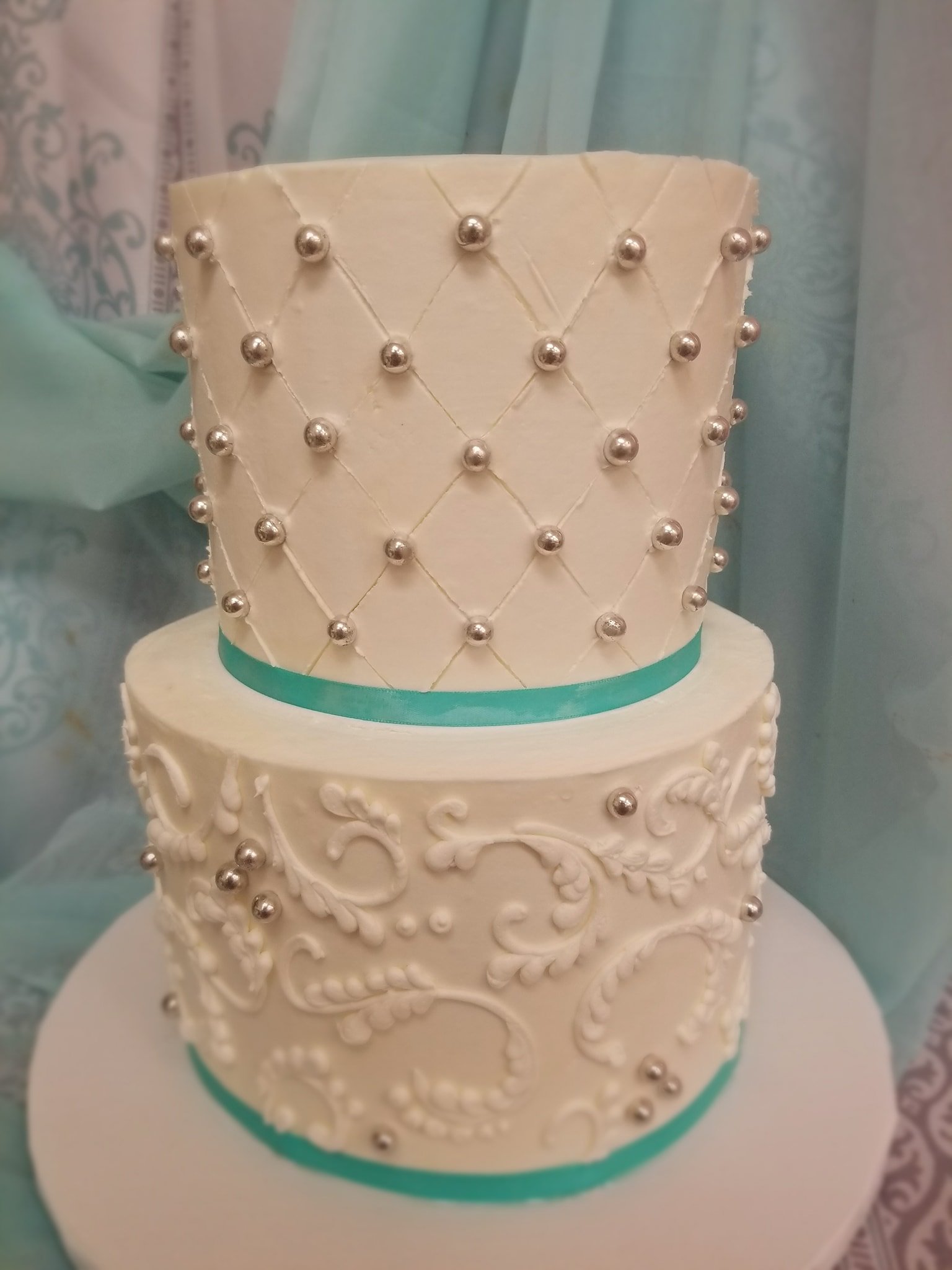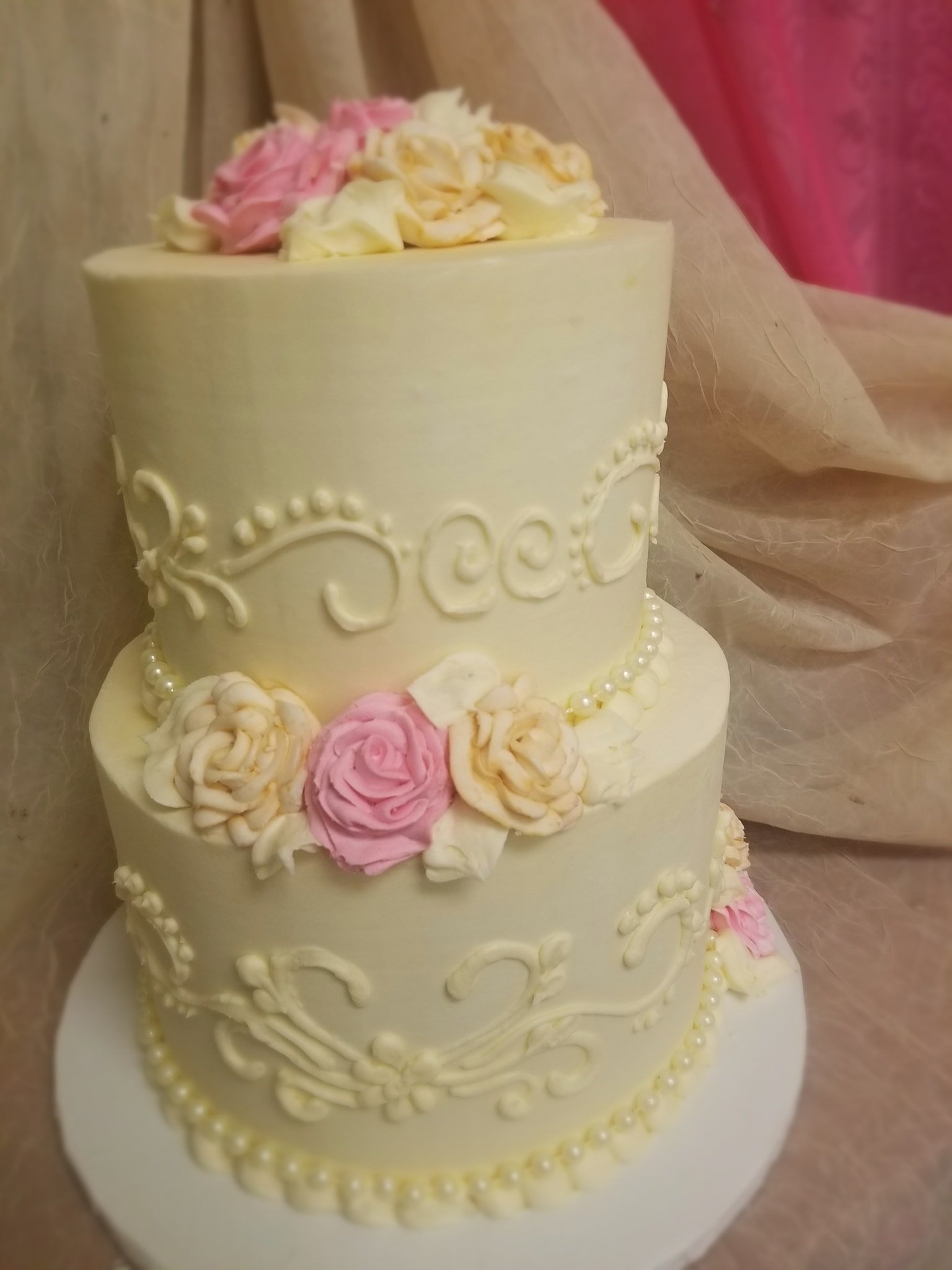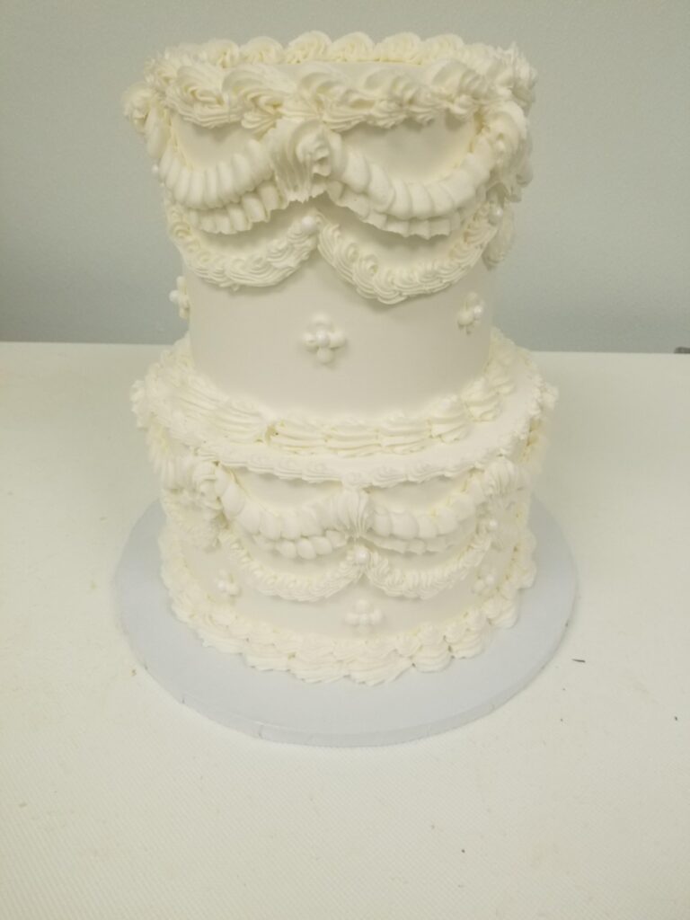 Two Tiered Wedding Cake Vintage Piping White WC168