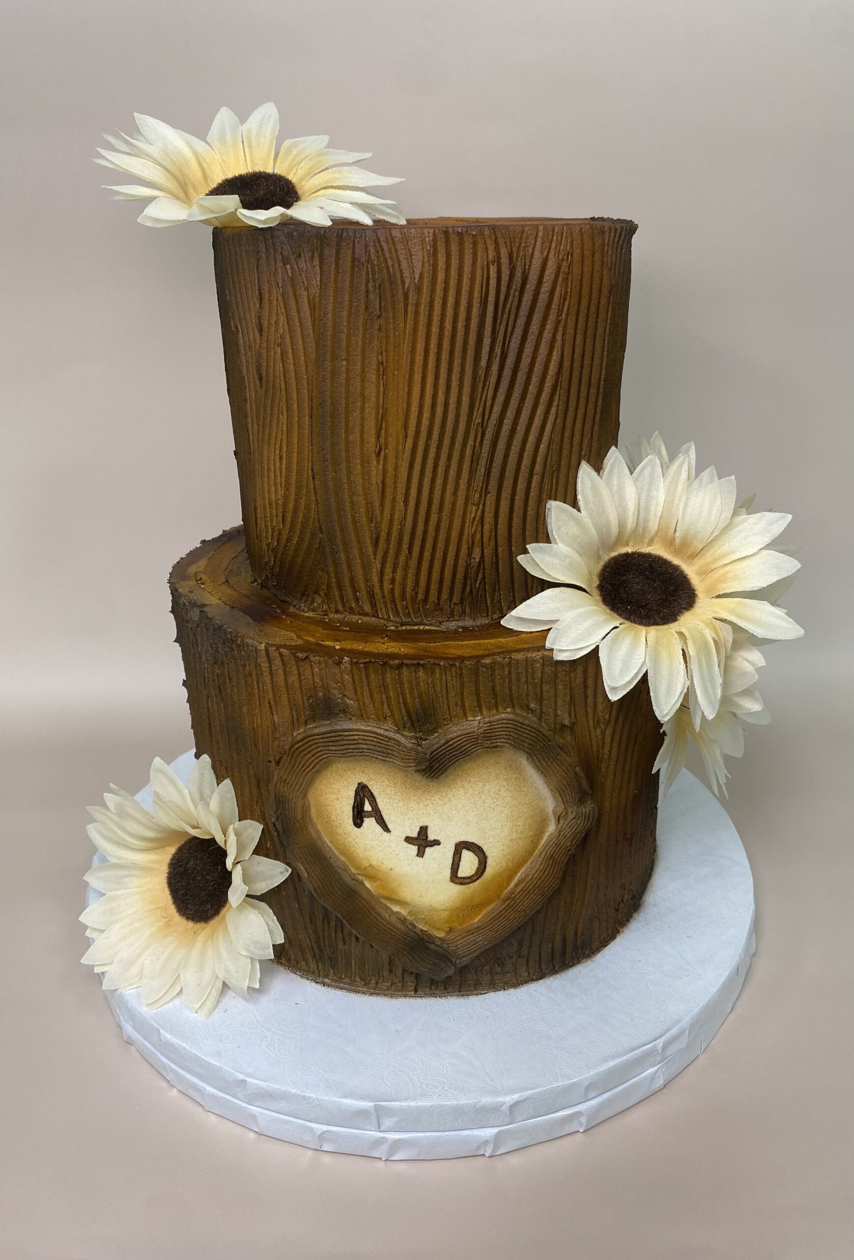 Two Tiered Wedding Cake Naked Sunflowers WC021