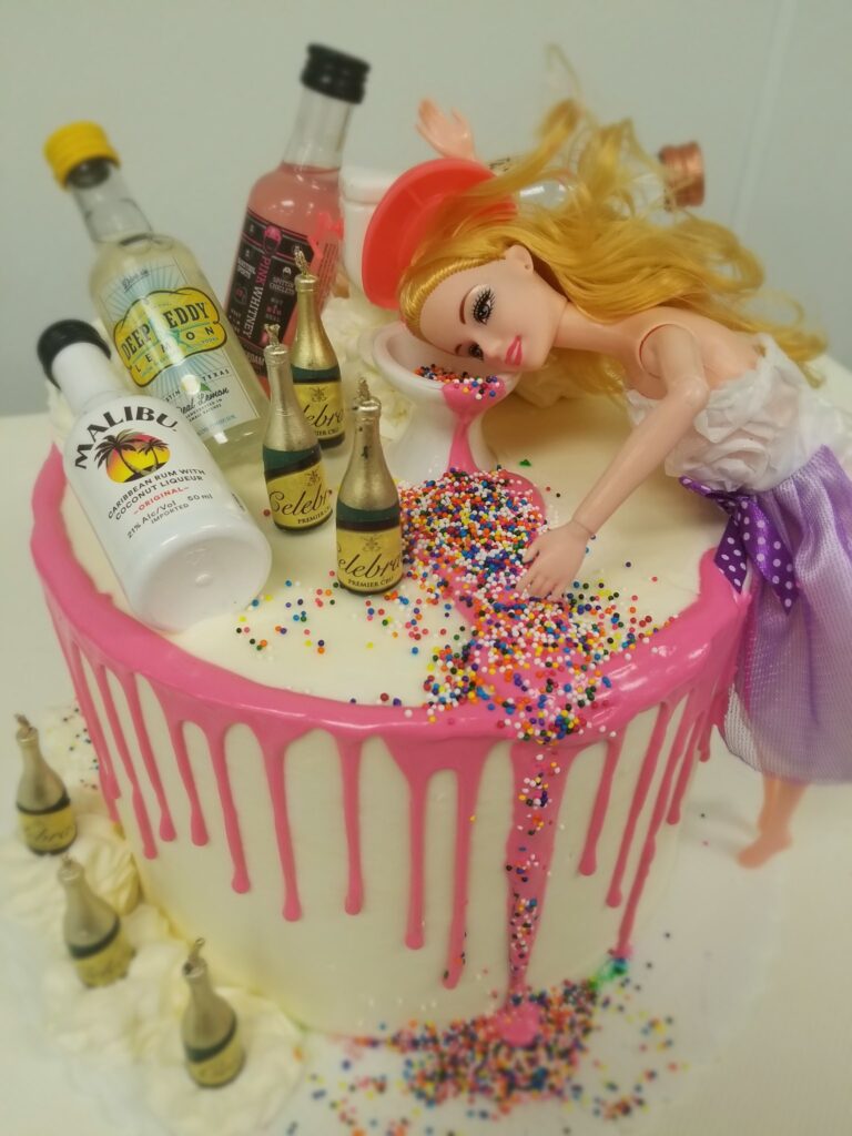 Double Stacked Birthday Cake Drunk Barbie Alcohol SC041