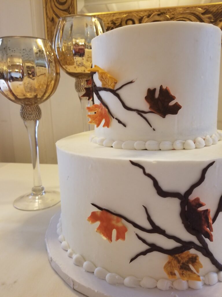 Two Tiered Cake Birch Tree Vines Leaves SC012