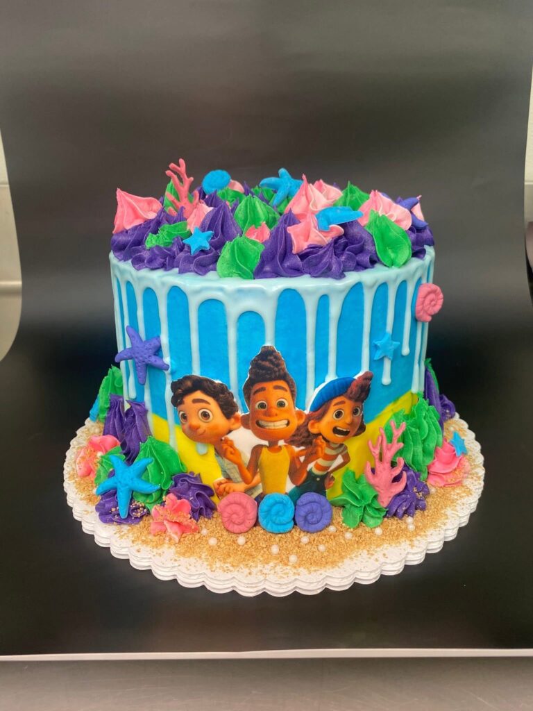 Double Stacked Birthday Cake Moana Ocean Flowers SC402